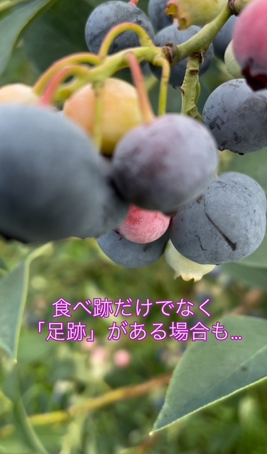 スズメのブルーベリー被害にはつつき跡が残ります。