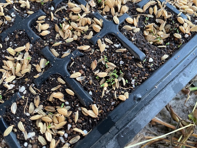 ジャーマンカモミールが種まき3日目で全体的に発芽してくるのは、今までで一番早いです。