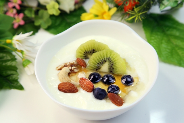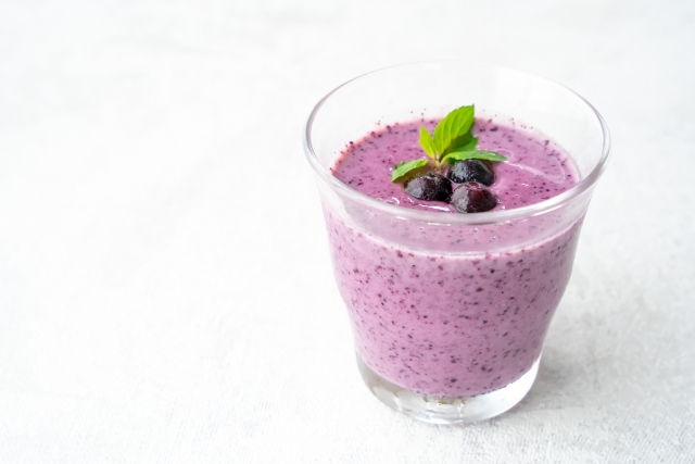 ブルベリーには、ヨーグルトの乳酸菌のエサになる水溶性食物繊維と腸の働きを活発にする不溶性食物繊維がバランスよく、豊富に含まれています。