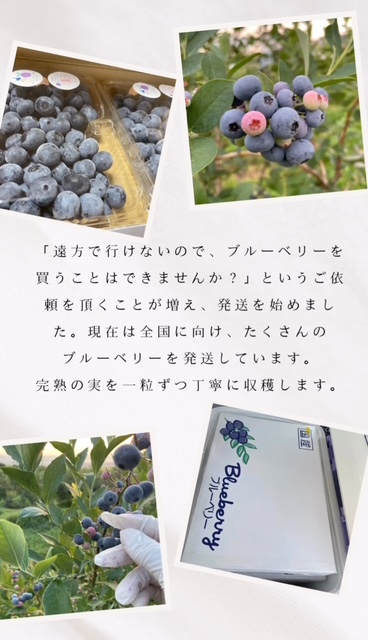 ブルベリーは収穫してから熟さない作物なので、樹の上で十分に熟したブルベリーを新鮮な状態で楽しんでいただきたいと思っていました。
