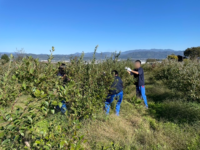 害虫の観察や駆除、草刈り、剪定などを体験してもらいました。