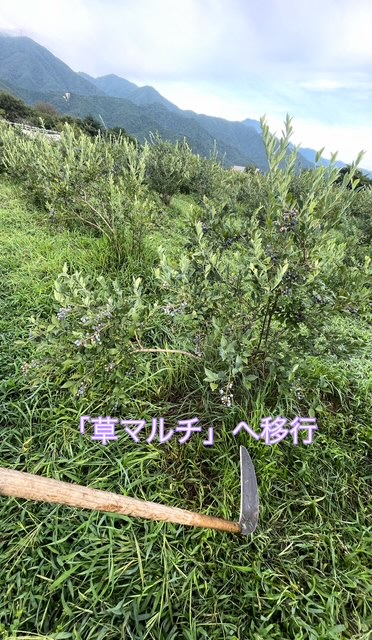 ブルベリーの成長とともに、マルチングは「草」マルチへ移行します。