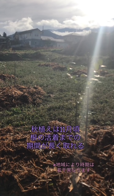 メリットとしては、春に芽が伸びるまでに、根が活着する期間が十分とれるので、春先の成長のスタートがよくなる点です。
