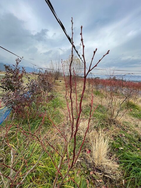 ハイブッシュ系ブルベリーは、ミスティなど落葉しにくい品種を除き、そのほとんどが落葉しました。