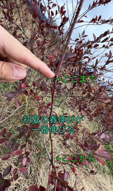 ブルベリーの枝は、2~3回ほど伸びのピークがあります。