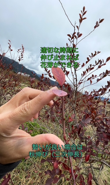 しかし、適切なタイミングで伸び留まると秋伸びの枝先にも、花芽ができ冬にも枯れにくいです。