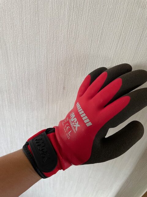 防寒の作業手袋の中にインナー手袋を重ねる場合は、いつもより大きめの作業手袋にしておくのがポイントです、