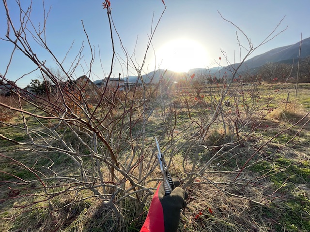 だんだんと寒くなりますが、「インナー」防寒着をフル活用しながら、がんばってブルーベリーの剪定を進めていきたいと思います。