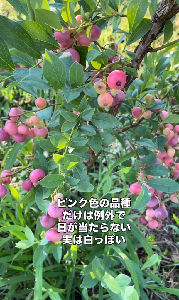 ブルーベリーの実は、たくさんの日光を浴びて、熟していきそうですが、実際には、日陰でも色づき、熟します。