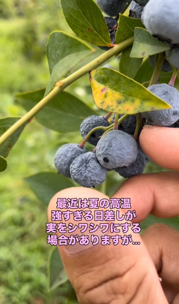 近年の猛暑で、ブルーベリーの実がシワシワになる場合があります。