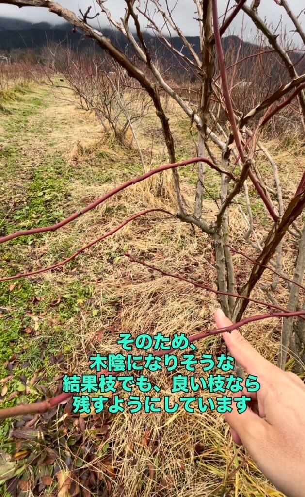 上記の理由から、日陰になりそうな、結果枝は不利どころか、むしろメリットがあるため