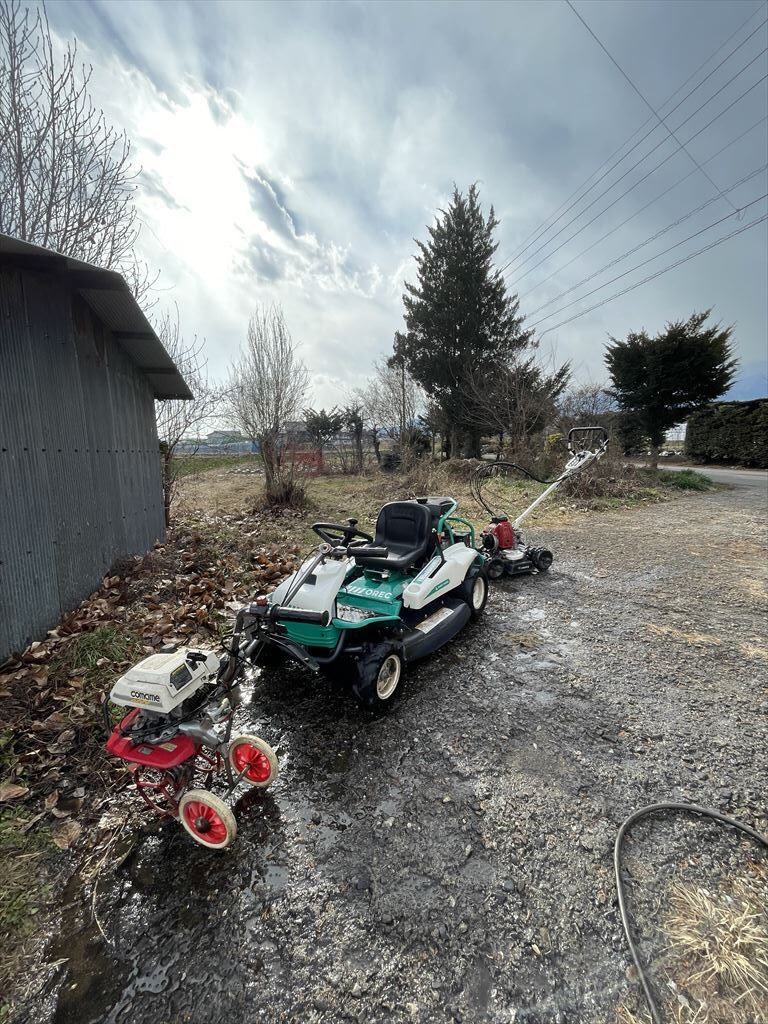ブルーベリー狩りシーズンはもちろん、草が生える時期の草刈りには欠かせない乗用草刈り機。