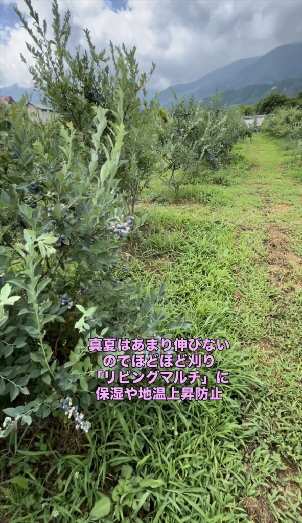 下草の管理に興味のある方は、ブルーベリー狩り等でご来園いただいた際に、お気軽にお声掛けください。